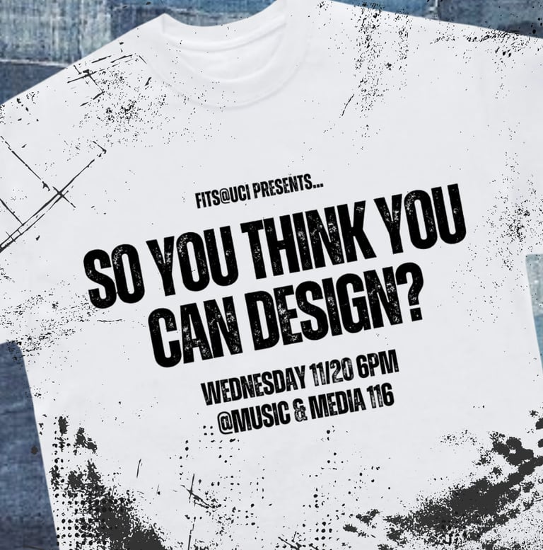 All promotional material (found on @fits.uci on Instagram) was curated to embody the theme of the show. The flyers were an invitation to the audience to come on an exploratory journey of our human essence. Bold colors, absence of color, graphics, and text convey the clashing themes of existentialism and create a world of imagination and expression.